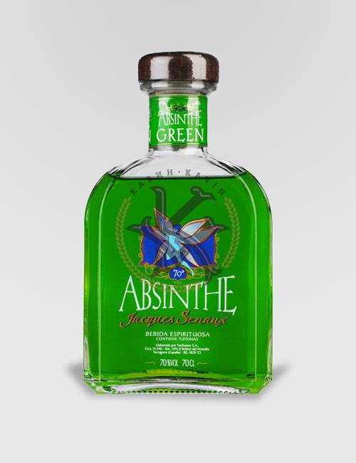 - JacquesSenauxGreen. Имеет изумрудно-зеленый оттенок, который создается за счет использования в изготовлении горькой полыни, фенхеля и аниса. В многогранном аромате абсента доминируют нотки аниса и полыни, которые идеально переплетаются с теплыми тонами гвоздики, ванили, перечной мяты, корицы и шафрана. Вкус этой марки абсента выделяется сбалансированными оттенками горькой полыни и аниса, а в послевкусии можно ощутить теплые оттенки кориандра, мяты и дягиля. Крепость напитка оставляет 70 градусов, но благодаря сбалансированному составу трав, абсент можно употреблять в чистом и неразбавленном виде.