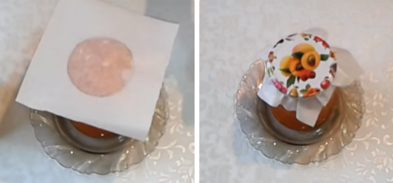 4.Банку помойте и высушите. Стерилизовать не нужно, так как джем все равно сырой. Переложите готовое лакомство в банку до самого краю. Сверху прикройте пергаментной бумагой и закрутите крышку.