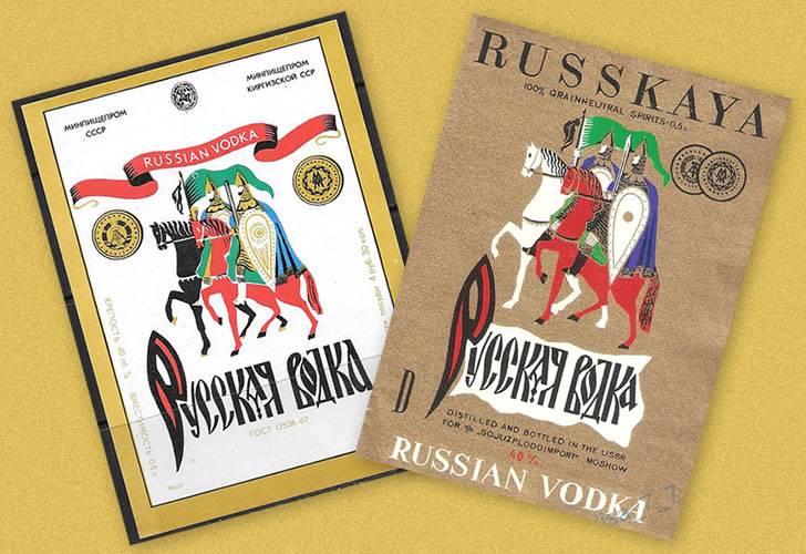 Во времена перестройки бутылка «Русской» пережила немало преобразований: надписи на ней то появлялись, то исчезали, то переводились на национальные языки, витязей со временем заменили русские богатыри и другие национальные символы.