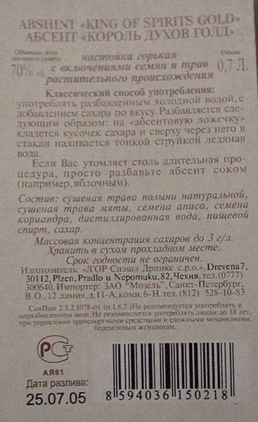 Абсент King of Spirits («Король Духов»): описание, марки, производитель