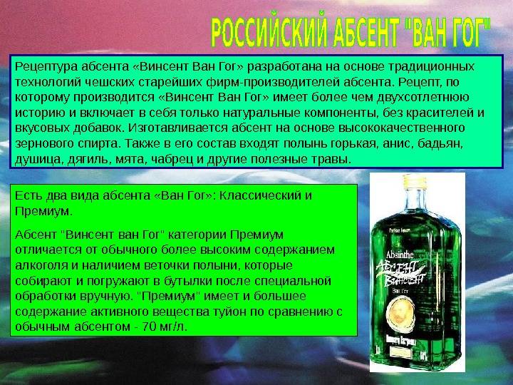 - самый простой – русский метод. Сначала варят сахарный сироп (3 ст. ложки сахарного песка на 100 мл воды). Полученный сироп нужно разбавить с абсентом и залпом выпить;