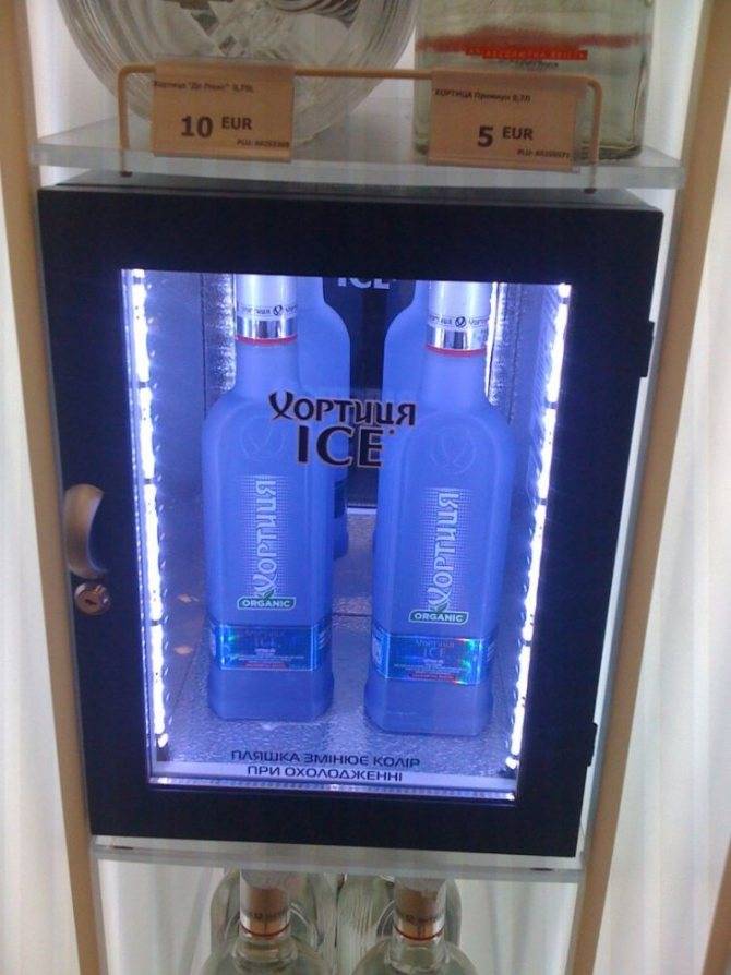 При охлаждении водки до +5, бутылка синеет, как бы намекая своему владельцу о готовности к употреблению.