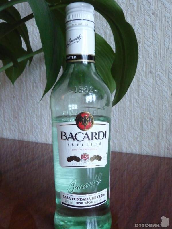 - — Bacardi Superior —. Крепкий алкоголь прозрачного цвета с выразительным фруктовым привкусом. Основой букета выступают нюансы миндаля, ванили и фруктов.