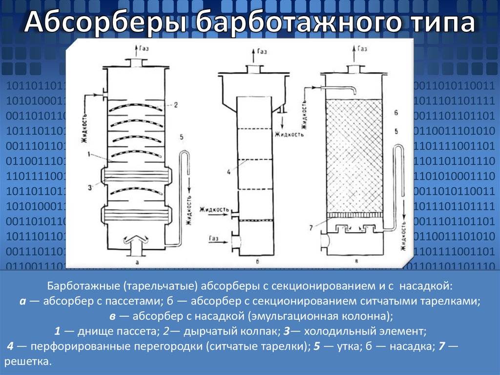 Как устроены аппараты барботажного типа в отделении абсорбции.