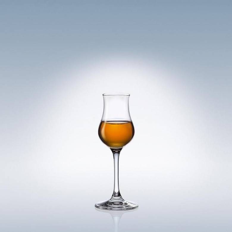Напиток обладает насыщенным ароматом и довольно высоким содержанием спирта, что подразумевает употребление маленькими глотками. Чем выше ножка и толще дно бокала, тем дольше содержимое сохраняет необходимую температуру, а сужающиеся стенки позволяют максимально раскрыться аромату.