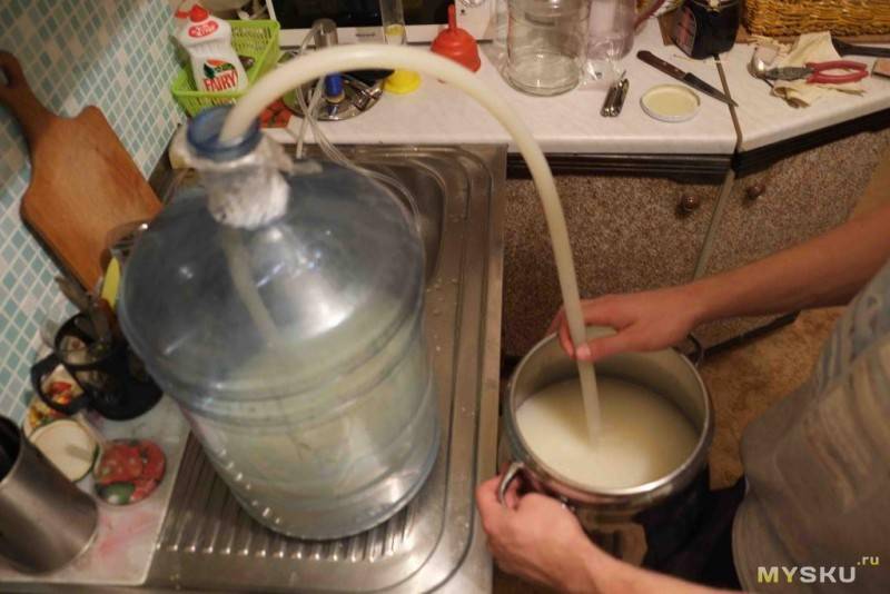 - Через трубку с небольшим диаметром снять готовую брагу с осадка;