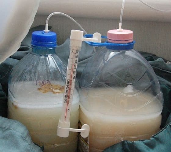 Переместите бутыль в теплое место (оптимально – 26-28⁰С), или укутайте теплыми одеялами. Самые ответственные самогонщики устанавливают аквариумные подогреватели, поддерживающие нужную температуру.