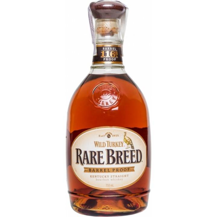 «Редкая порода» На начало 2020 года все этикетки виски Wild Turkey носят изображения одноимённой птицы, нарисованной художницей-анималисткой Джули Родос. В Соединенных Штатах продаётся пять вариантов «Уайлд Тёки»: 81 пруф крепости (ранее 80 пруфов), 101 пруф, «Дух Кентукки», «Заповедник Рассела» и «Редкая порода». Wild Turkey «Дух Кентукки» — однобочковое виски (англ.) 101 пруфа крепости; «Заповедник Рассела» — бурбон десятилетней выдержки, названный в честь дистиллятора Джимми Рассела и имеющий крепость в 90 пруфов; «Редкая порода» — купаж из шести-, восьми- (который представляет собой смесь из 6, 8 и 12-летних виски на 108,4 пруфа с и медовым ликёром, называемым «американский мед». Другие релизы Wild Turkey включают ограниченное издание Wild Turkey «Традиционный», Wild Turkey 81 доказательство бурбона Wild Turkey 81 пруфа крепости ржаной бурбон, Wild Turkey пряный и Wild Turkey «Прощённый» (купаж ржаного виски с бурбоном). Wild Turkey Ржаной 101 отсутствовал на рынке в течение года, с 2012 по 2013, из-за неожиданного спроса, затем вновь был выпущен на рынок в ноябре 2013 года.