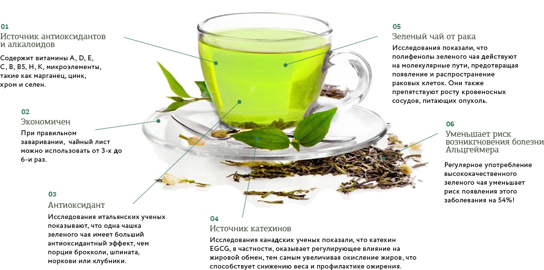 Зеленый чай очень полезен для здоровья: его регулярное употребление способствует снижению риска заболевания раком, нормализует артериальное давление и резистентность к инсулину. Большая часть этих полезных свойств обусловлена содержанием в зеленом чае катехинов.