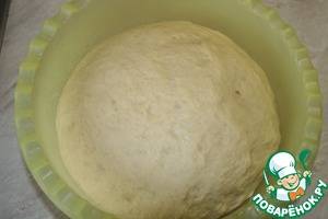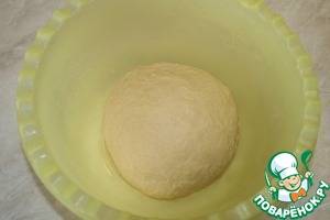 После того, как вымесили, тесто выкладываем в миску, смазанную подсолнечным маслом, накрываем пленкой и ставим в теплое место на 1-1,5 час или до подъема.