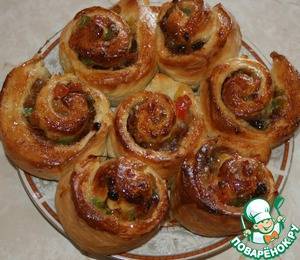 Нам понадобится тесто, масло, сахар коричневый Мистраль, корица, изюм и цукаты.