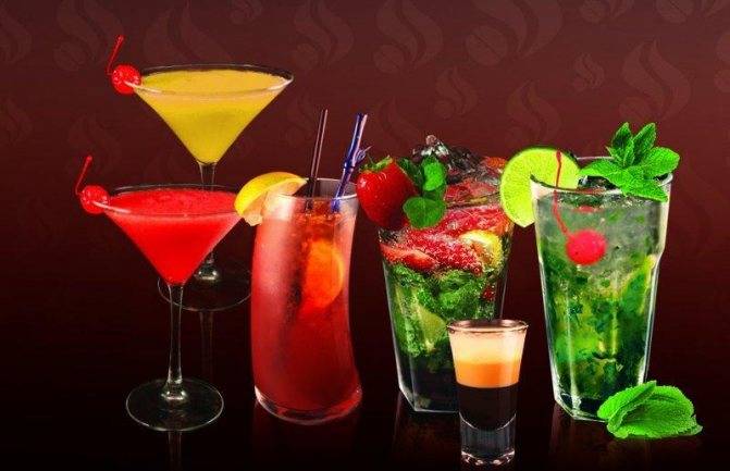 - Сладкий алкогольный напиток является основным ингредиентом. Как правило, к нему добавляют различные соки из ягод и фруктов.
