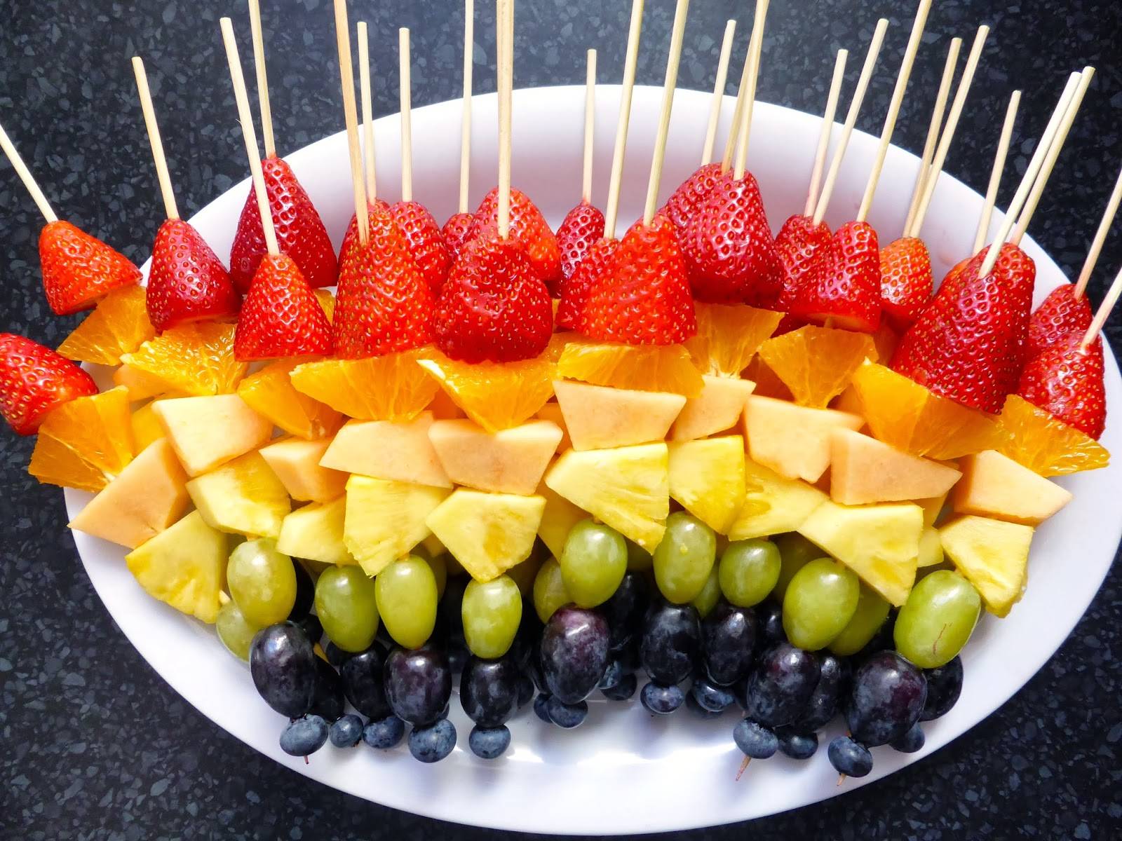 - фрукты (яблоки, апельсины, груши, клубника, белый виноград, киви);