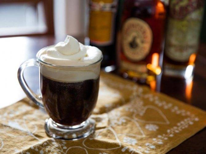 - «Ирландский кофе» — этот напиток появился в одном из ирландских аэропортов в 1952 году. Пассажиру он так понравился, что он попросил его рецепт. А когда вернулся в Сан-Франциско, то передал его в один бар. Для него вам понадобится молотый натуральный кофе (30 г), сахарный сироп (10 мл) и виски (50 мг). Перемешайте все составляющие ложкой и украсьте сверху взбитыми сливками.