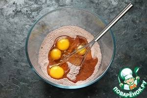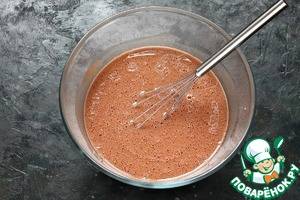 - Продолжая взбивать массу, влейте растопленный шоколад.