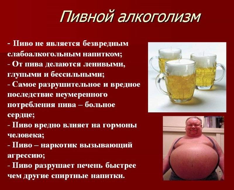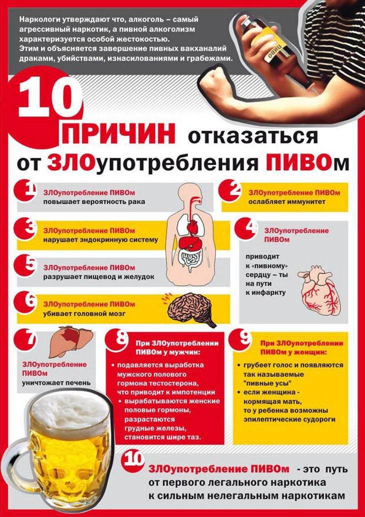 Пиво в сравнении с иными спиртными напитками менее вредно – об этом говорят много и часто, мотивируя это утверждение тем, что в нем содержится меньшее количество этилового спирта. Благодаря такому объяснению человек говорит себе: «Я не пью водку, поэтому нельзя сказать, что у меня алкоголизм». Последствия этого заблуждения опасны, так как люди, успокоенные информацией о минимальной «алкогольности», забывают о необходимости уточнить, можно ли пить пиво много, более чем по 500-700 мл в день. Ответ на этот вопрос – нельзя, так как чрезмерное употребление данного напитка будет вредно для всех без исключения внутренних органов и систем организма:
