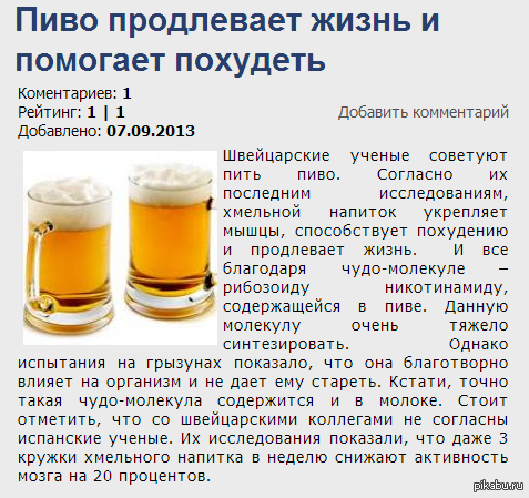 Человек, балующийся пару раз в неделю бутылочкой пива, подвергает своё здоровье риску не более, чем его друг, который любит выпить стакан колы с пирожным.