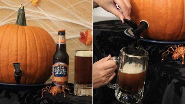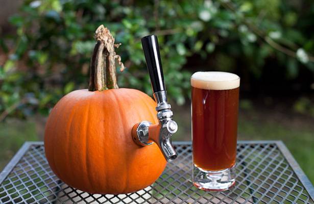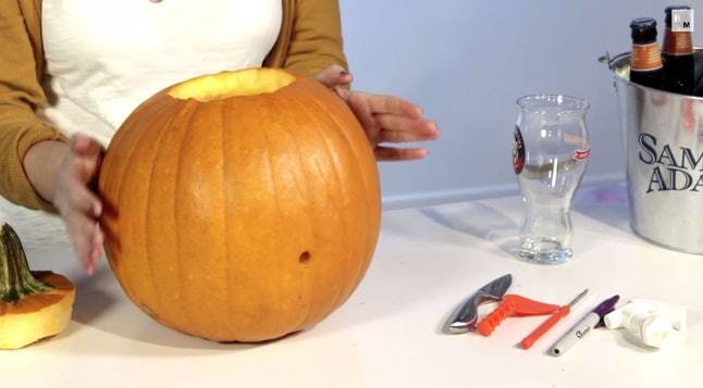 2. Срезать мякоть тыквы и выложить в чашу блендера. Добавить пиво и пюрировать.