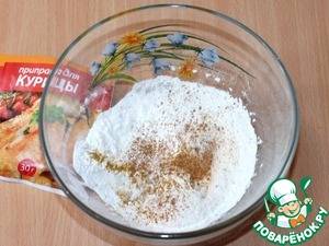 (0,5 ч. л. — итальянские травы, 0,5 ч. л. — пикантная смесь, 0,5 ч. л. — приправа для курицы)