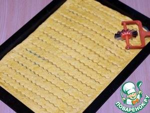 Нарезать тесто полосками шириною в 1-1,5 см.