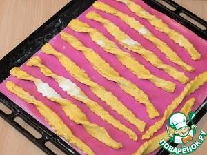 7. Разложить полоски на расстоянии друг от друга на противне или на решётке. Выпекать палочки в хорошо разогретой духовке при температуре 190 С, 30 минут.