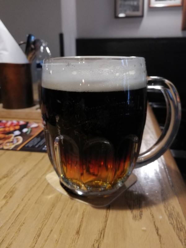 Подготовить высокий бокал. Остудить темное «Krusovice» в морозильной камере, светлое оставить на нижней полке холодильника.
