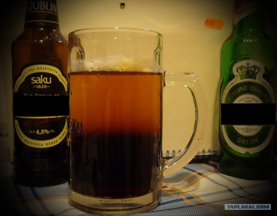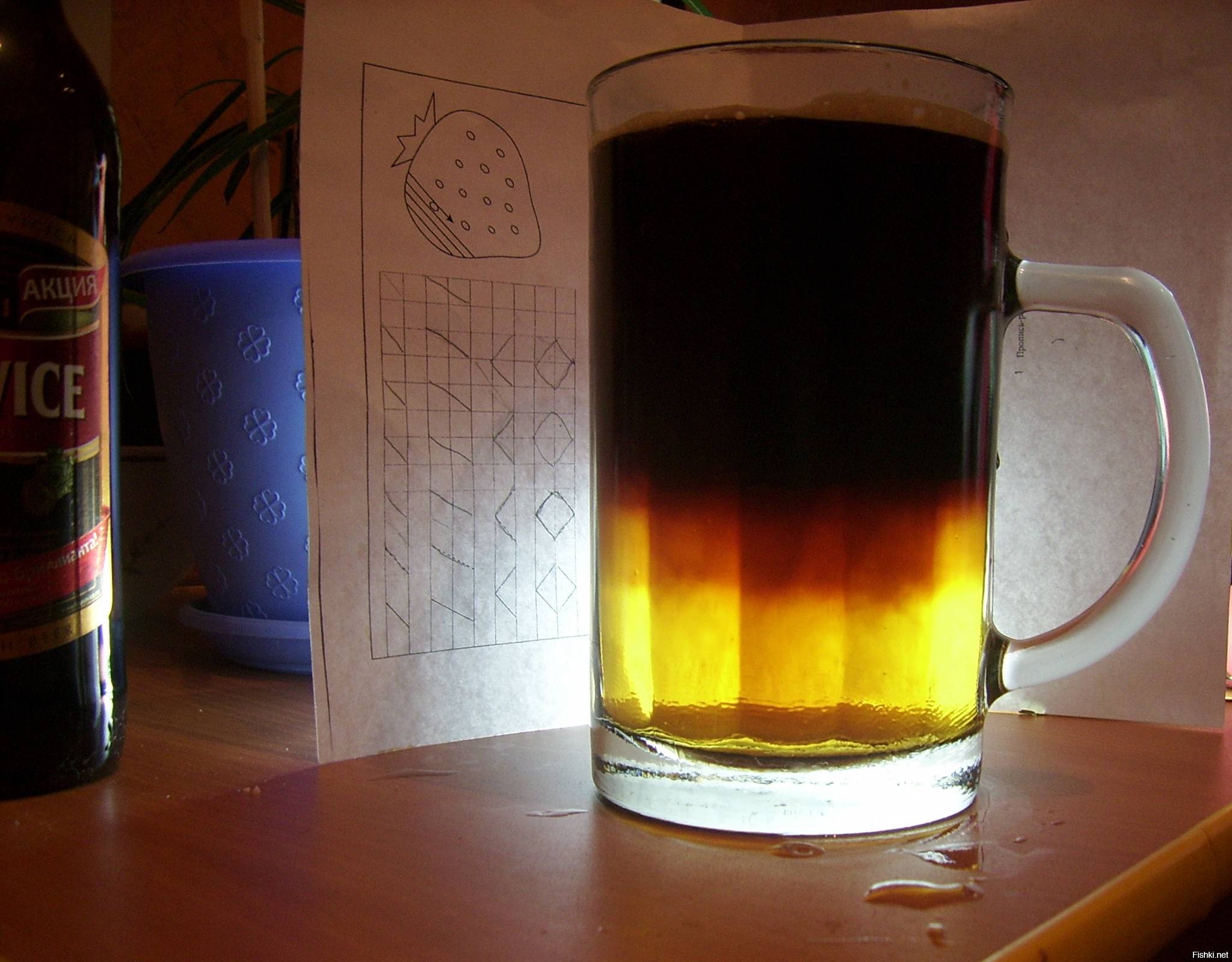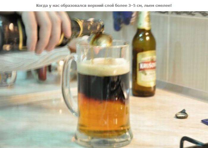 В классическом чешском рецепте нижним слоем выступает светлое пиво, но в последнее время стало модным наливать на дно темное. Попробуйте оба варианта, вкус немного отличается. Сорта пива можно смешивать в разных пропорциях, первый раз советую взять соотношение 1:1.
