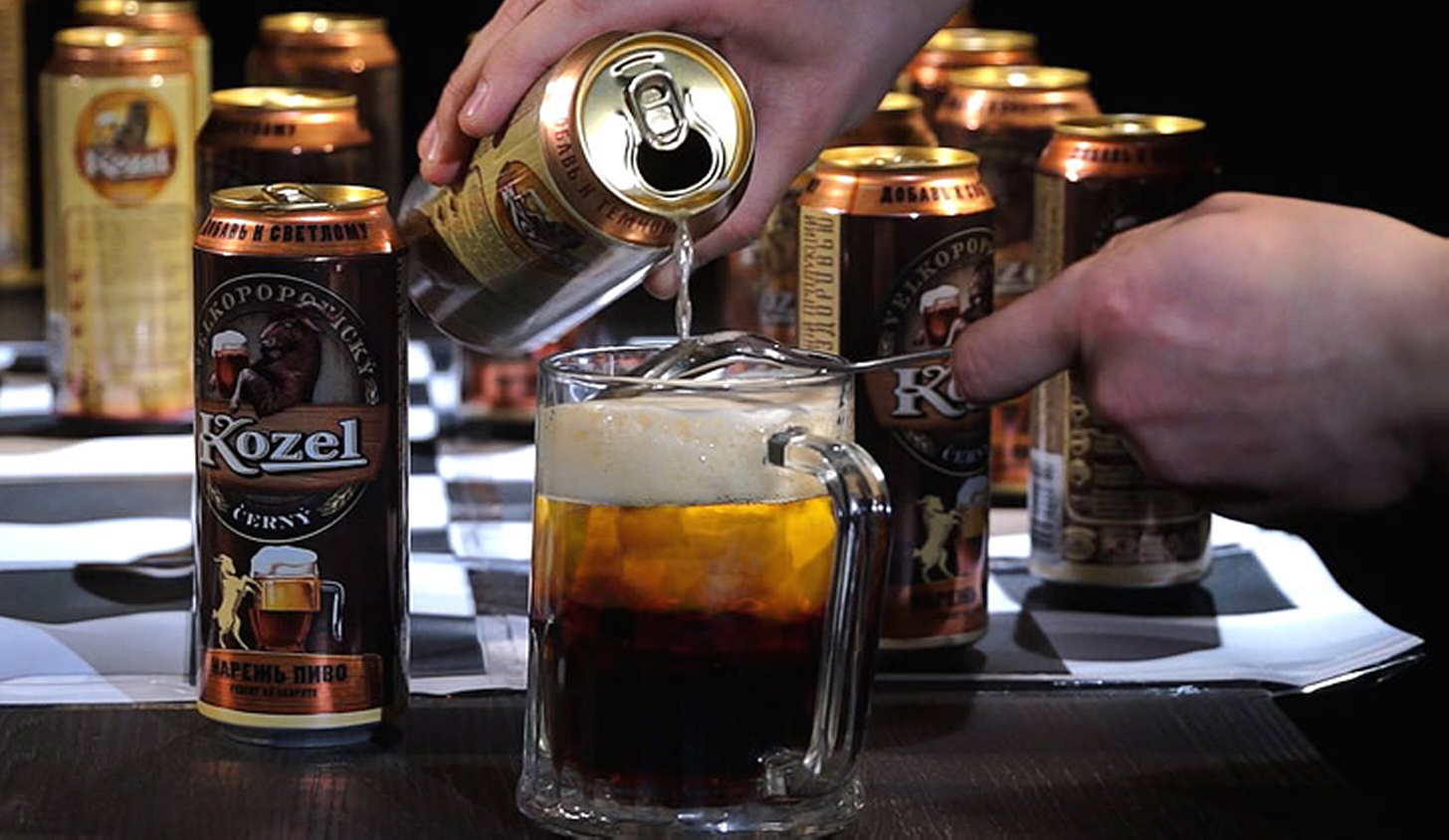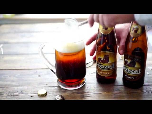 Опробовать рецепт резаного пива, где светлый сорт окажется внизу, можно, подготовив продукцию «Velkopopovicky Kozel». В этом варианте светлое пиво плотнее темного. Для увеличения разницы плотности бутылку со светлым хмельным нужно охладить в морозилке.