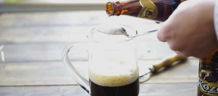 - Медленно добавьте темного алкоголя до верха. Можно лить любым удобным способом, допуская тем самым смешивание алкоголя.