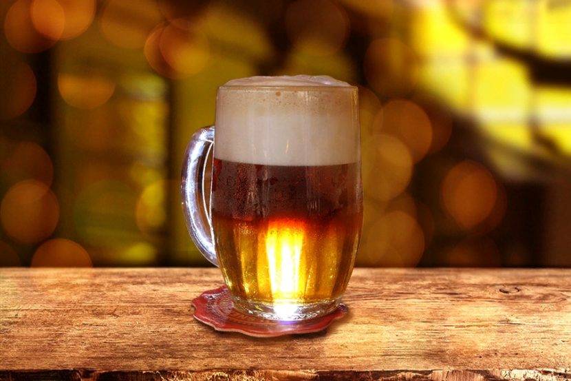 - Наливаем в пивной бокал первый слой пива, более плотного по консистенции. Делаем это по стенке бокала, чтобы не вызвать образования большого количества пенки (ее слой должен быть не более 2 сантиметров). Ожидаем примерно 30-60 секунд, пока наш первый слой «успокоится».