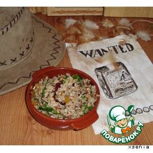 Никогда не готовила и не пробовала дикий рис, а тут такой повод. Главный ингредиент, Смесь пропаренного и дикого риса «Акватика Mix» тм Мистраль, был куплен в ближайшем магазине. Далее я стала думать, какое блюдо приготовить. Конкурс у нас тематический, о диком западе, о ковбоях… А в каком виде ели этот рис ковбои? Попробуем создать простое, но вкусное и сытное блюдо. Я люблю простые рецепты с минимумом ингредиентов. Огромные списки продуктов в одном блюде меня пугают. Сдается мне, и ковбои не располагали широким набором продуктов. А то, что имели, должно быть не особенно экзотичным и легко добываемым в условиях дикого запада. Попыталась представить себе ковбоя, прерию… Допустим, ковбой остановился на ночлег. Разжег костер. Подвесил котелок над костром. Достал мешочек с крупой …