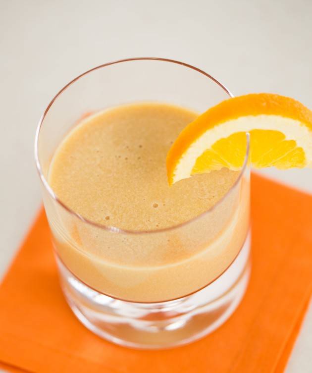 Смешайте все ингредиенты в блендере и подавайте охлажденным.