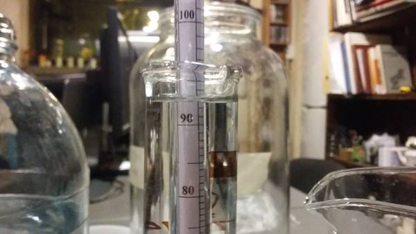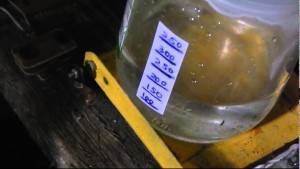 После первой дистилляции, как уже говорилось выше, получается спирт-сырец, крепостью около 70º. Перед чисткой его обязательно необходимо разбавить до 20-30º. Это делается потому, что от вредных соединений, входящих в состав СС, проще избавиться при условии низкой крепости дистиллята. Еще одна причина, по которой нужно разбавлять спирт-сырец – это соблюдение техники безопасности при домашнем производстве алкоголя.