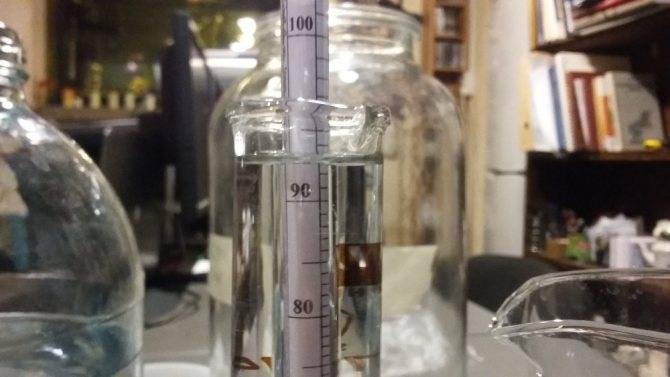 Перед тем как начать второй перегон и разбавить самогон, как правило, нужно воспользоваться специальным прибором — спиртомером. Он помогает определить, какое количество чистого спирта содержится в жидкости. Погрешность использования такого прибора может составлять около 0,1- 0,6%