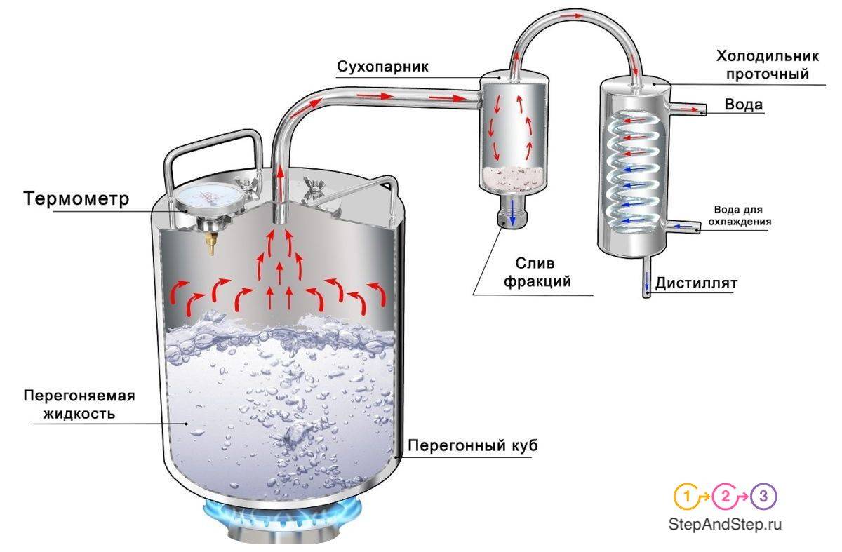 Но как правильно вторично перегонять самогон? Процесс вторичной перегонки четко структурирован на три ступени:
