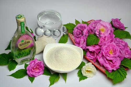 Ингредиенты для приготовления ликера из лепестков чайной розы: