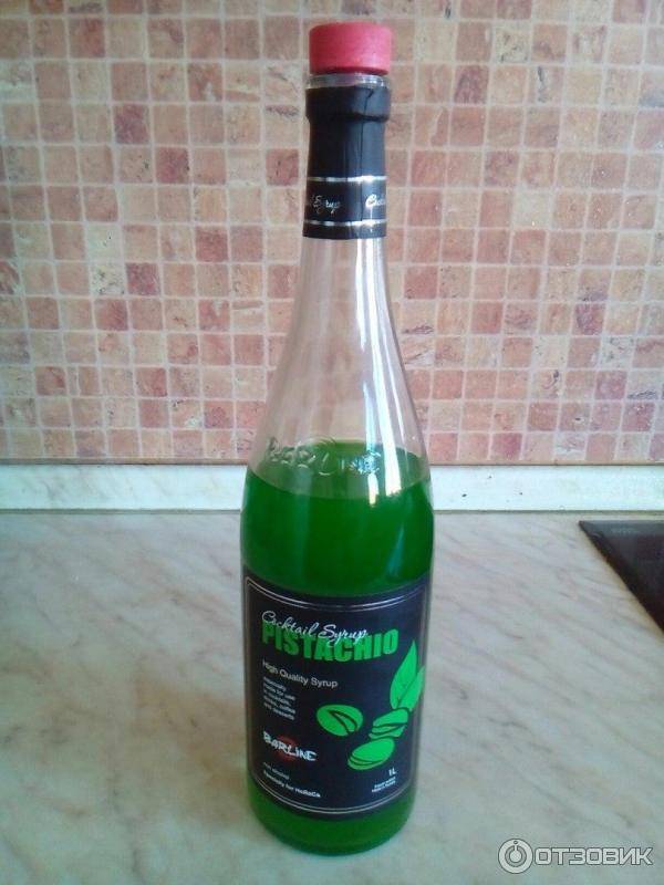 Фисташковый сироп имеет характерный зеленый цвет. Используется он в соответствующих коктейлях. Наиболее популярные ингредиенты в связке с ним – пряный ром, ежевичный ликер и ягодный морс. Для полноты вкуса добавляют биттер. Лучше брать фруктовый вариант.