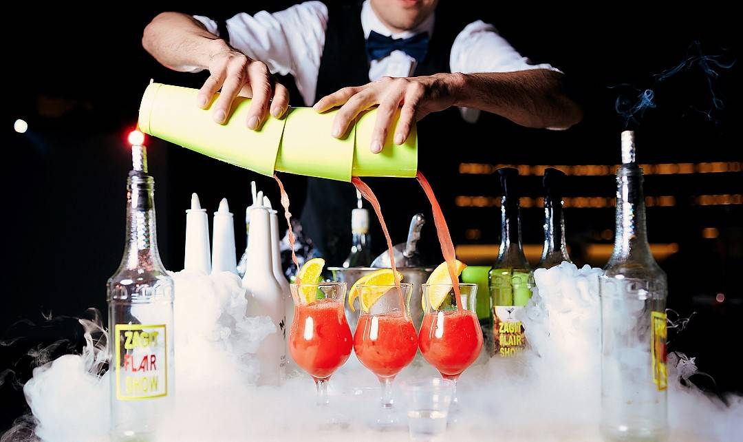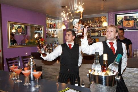 Бармены, устраивающие шоу-флейринг, не ограничивают свою фантазию. Это могут быть и горящие напитки, и сложные танцы прямо во время приготовления напитков, и настоящие акробатические трюки, достойные цирковых артистов.