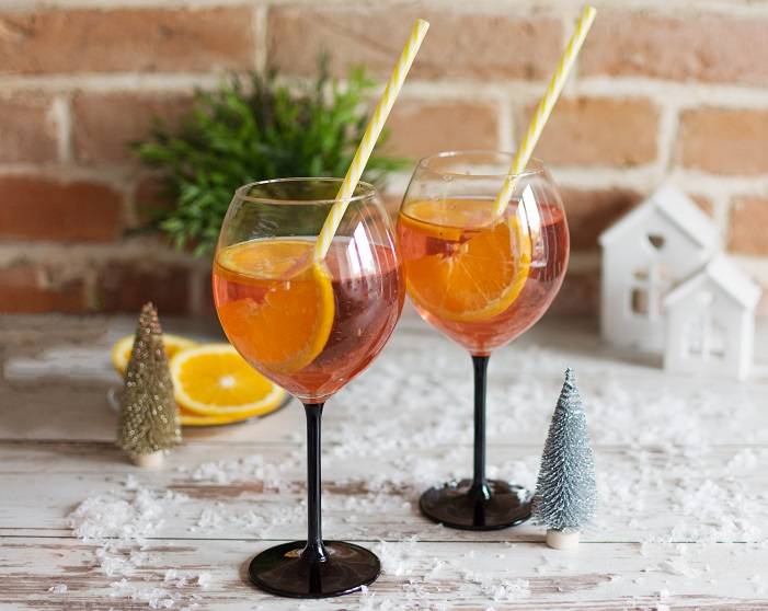 Другой распространенный рецепт – Martini Rocks Rosato. В стакан-тумблер для виски кинуть 7-8 кубиков льда, выжать дольку апельсина, добавить примерно 70 мл Martini Rosato, перемешать.