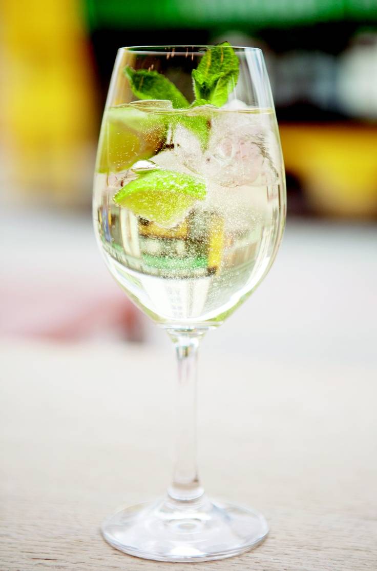 - Джин и спрайт. В первом случае напиток повысит крепость мартини, обогатит его нотками растительных пряностей (фиалкового корня, миндаля, можжевеловой ягоды, кориандра). Во втором – дополнит гармоничный вкус вермута оттенками лайма и лимона, снизит содержание спирта. В обоих случаях при смешивании напитков соблюдайте следующие пропорции: 1 часть джина (спрайта) и 2 части мартини. Для приготовления охлаждающего коктейля рекомендуется дополнительно добавить дольку лимона, горсть льда.