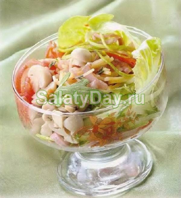 Очень легкий и вкусный салат с оригинальным соусом отлично подойдет для торжественной подачи.