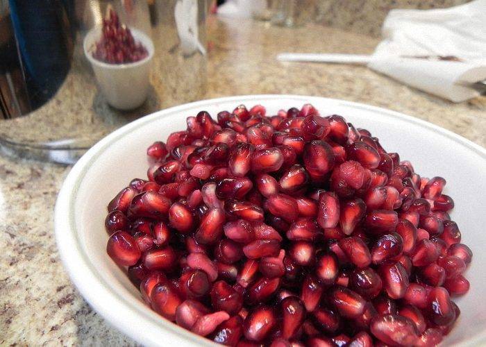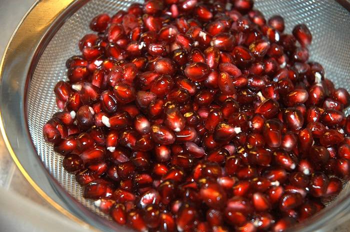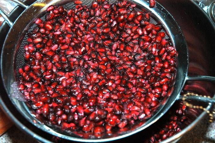 Из зерен граната выдавливают сок и смешивают его с водой. К ним добавляют декстрозу и лимонную цедру. Получившуюся смесь ставят на огонь, доводят до кипения и проваривают 4-5 минут при постоянном помешивании.
