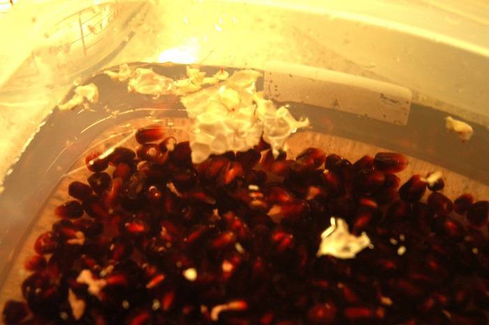 Гранатовые зерна изначально заливаются водой. Перед добавлением сахара и рома жидкость необходимо процедить.