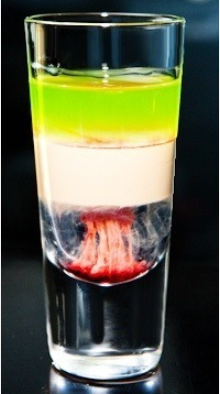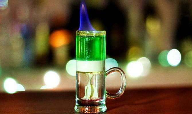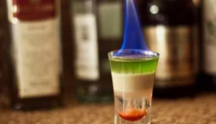 Этот рецепт приготовления практически идентичен предыдущему. Вместо айриш-крима в нем используют Бейлис, а верхний абсентовый слой поджигают. Пить нужно быстро, погружая трубочку в самый нижний слой.