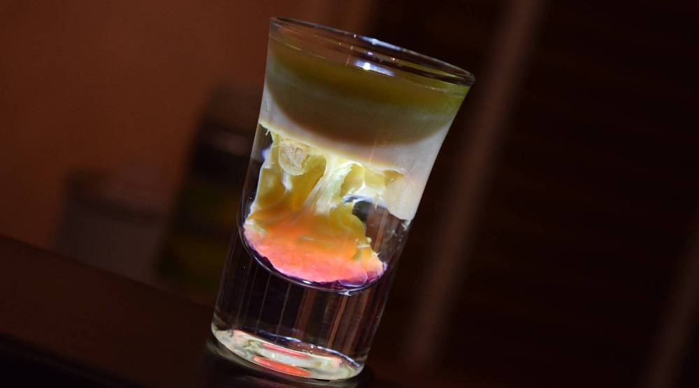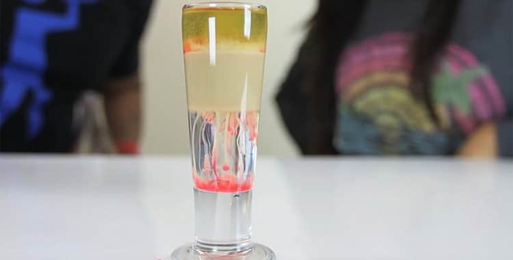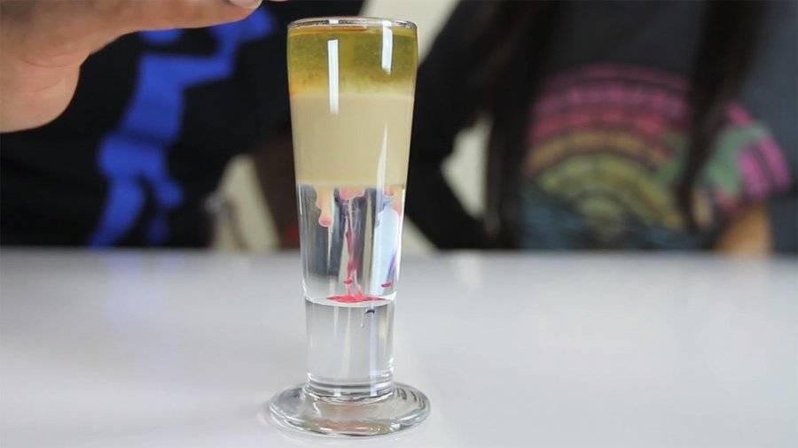 Следует также обращать внимание и на вязкость жидкости: чем она выше, тем больше вероятность того, что напитки не смешаются. Секрет приготовления слоистого коктейля в том, что первыми в рюмку вливают наиболее тяжелые ингредиенты, а последними – самые легкие