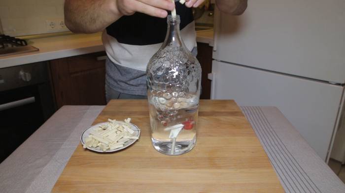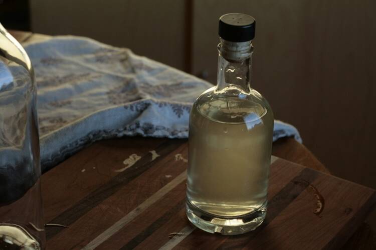 - Дать постоять еще сутки, после чего слить и наполнить банку 0,5 л спирта и 600 мл воды.