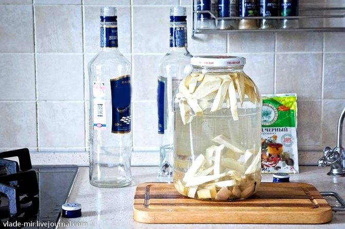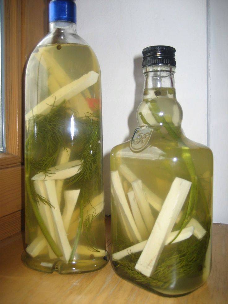 Помимо основного ингредиента понадобится алкогольная составляющая. Одинаковой популярностью пользуются самогон и водка. Реже настойка делается на спирту.