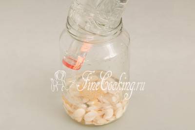 Заливаем содержимое банки бутылкой водки (500 миллилитров).