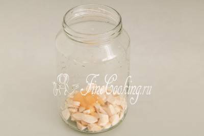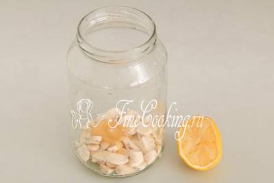 - Положить кусочки в небольшую банку, сюда же добавить мед и сок лимона.