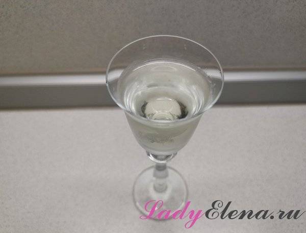 Две столовые ложки мёда (желательно не засахаренного) (можно с горкой), заливаем стаканом водки и размешиваем до полного растворения мёда. Если мёд растворился не полностью, аккуратно выливаем жидкость в банку и снова залив остатки водкой размешиваем.